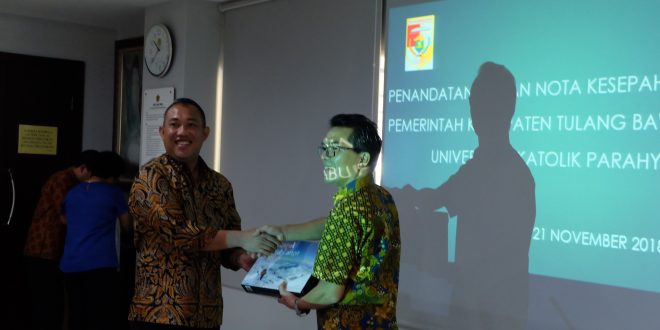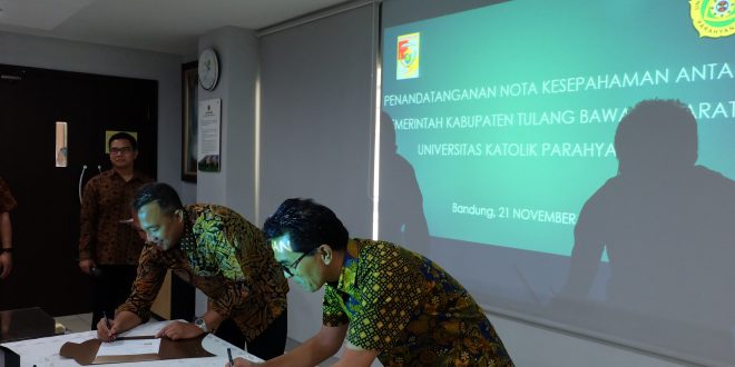 Penandatanganan Nota Kesepahaman ini dilakukan langsung oleh Bupati Tulang Bawang Barat dengan Rektor UNPAR, dan disaksikan oleh para Wakil Rektor, Kepala dan anggota Pusat Studi Adaptasi dan Resilensi Desain Lingkungan (CAREDs), Dekan, dan tamu undangan lainnya.
