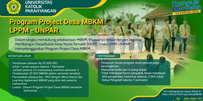 Seiring dengan berjalannya waktu, impelementasi kebijakan MBKM terhadap perguruan tinggi pun semakin gencar. Menjawab kondisi tersebut, UNPAR perlahan ikut serta dalam kegiatan-kegiatan MBKM yang ditawarkan dan juga memulai menyelenggarakan program internal MBKM di lingkungan UNPAR sendiri. Salah satunya, melalui LPPM UNPAR yang menginisiasi Program Project Desa MBKM, dimulai pada Semester Ganjil Tahun Ajaran 2021/2022 ini.